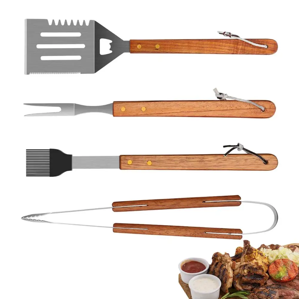2.Excellent Quality Design: Crafted with excellent stainless steel and wood, this Grill Utensils Set promises long-lasting use, ensuring rust-proof reliability for your culinary adventures.